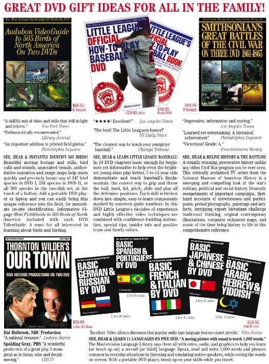 Seeing the value in trusted names attached to quality products, Mastervision partnered with the Audubon Society, the Smithsonian, Little League Baseball, and the Touche Ross accounting firm, releasing many hours of video, first on VHS, then on DVD, that garnered excellent reviews and touched peoples’ passions across America.